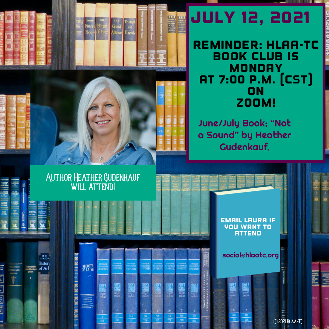 This coming Monday, July 12th at 7 p.m. Central Standard Time is our next virtual HLAA-TC book club. We will be discussing the fictional thriller “Not a Sound” by Heather Gudenkauf and we will be joined by the author. If you are interested in attending this virtual book club, please email Laura at social@hlaatc.singlerdesign.com and she will send you a Zoom meeting link.