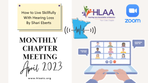 On Saturday, April 15th HLAA-TC met on Zoom for the April 2023 chapter meeting. We welcomed hearing loss advocate Shari Eberts and she gave a presentation on “How to Live Skillfully with Hearing Loss.” We recorded her presentation and the question and answers afterwards and the video is available to view on our YouTube page and our website. For a list of links to pertinent things discussed during the meeting, continue reading this blog post.