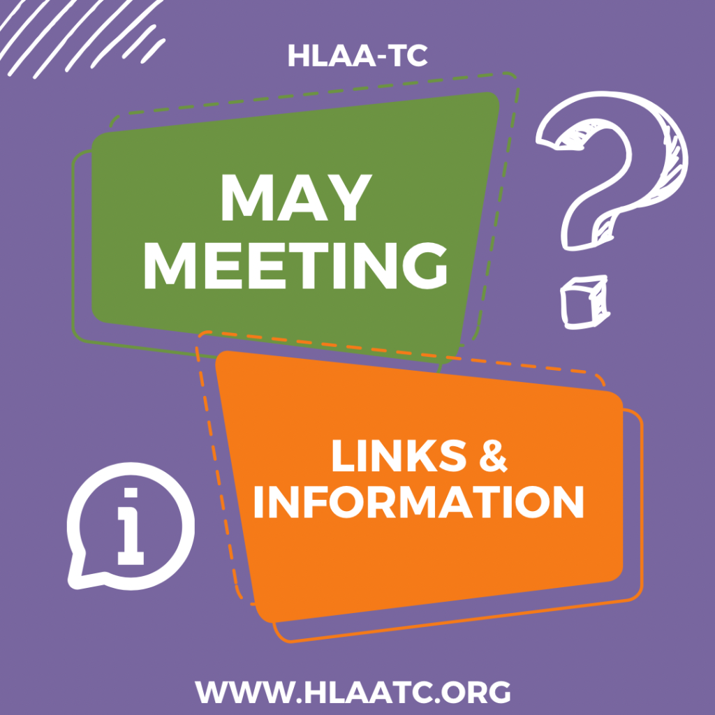 Thank you to those who attended our May chapter meeting on May 20, 2023. We will be on summer break from chapter meetings until September. In the meantime, the HLAA-TC Book Club will continue to meet on Zoom every fourth Tuesday night of the month (to register for book club Zoom links always refer to our website homepage where registration links are always updated). The HLAA-TC Board will meet in June, (be on break in July) and resume meeting in August. All members are welcome to board meetings, please email president@hlaatc.singlerdesign.com for board meeting links.