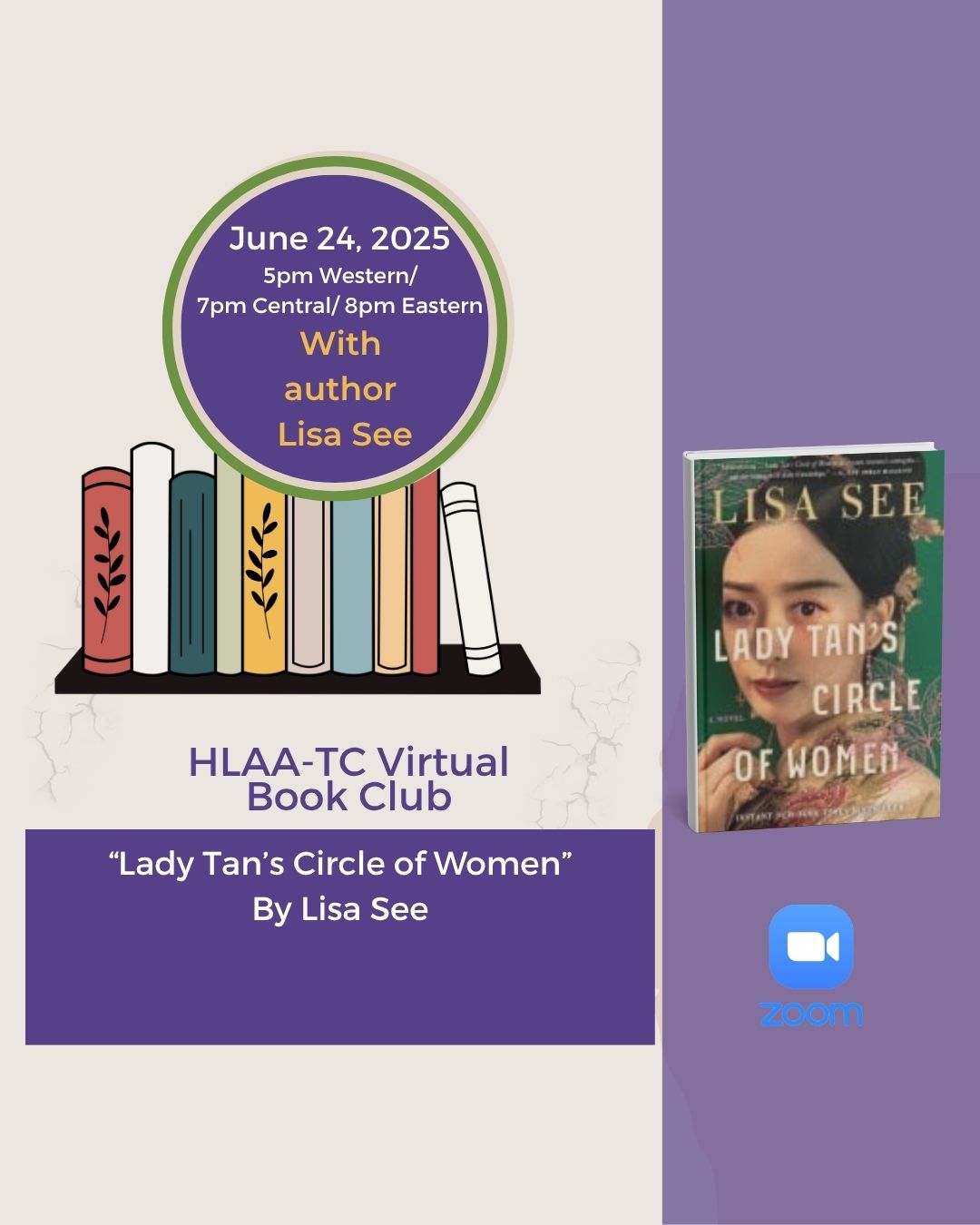 Reminder that HLAA-TC Book Club is meeting TONIGHT, Tuesday, June 24th to discuss the novel “Lady Tan’s Circle of Women” By Lisa See and author Lisa See will be our guest.