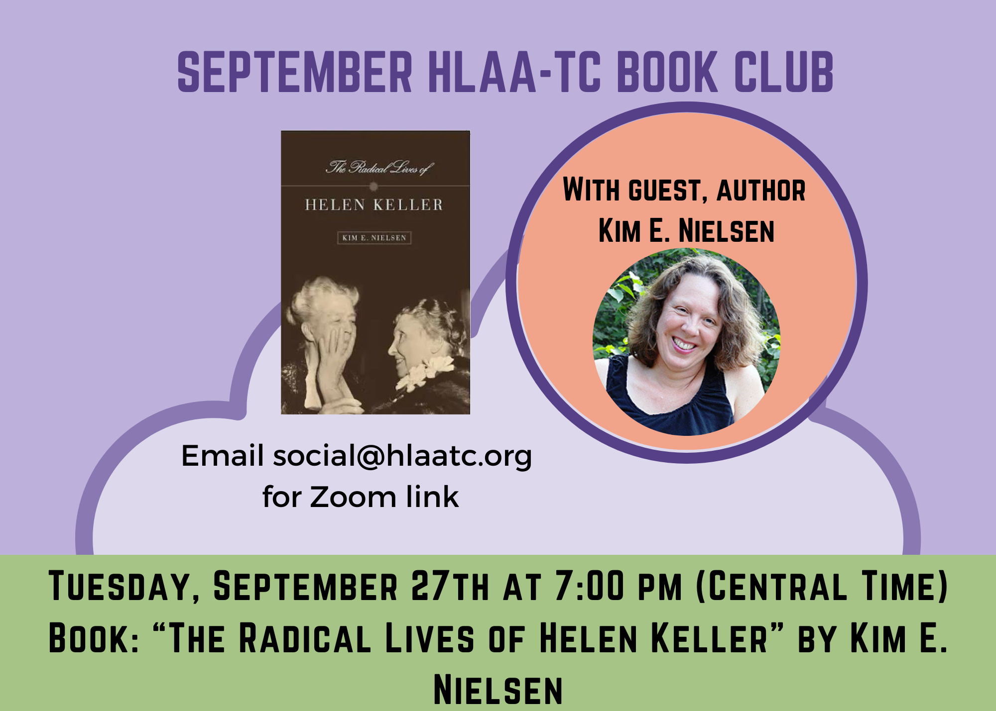 Announcing the September book and book club: September 27, 2022: The Radical Lives of Helen Keller (The History of Disability, 1)  by Kim E. Nielsen (nonfiction). We will meet at the usual time of 7:00pm (Central Time) on Zoom. We will be joined by author and professor Kim E. Nielsen. Dr. Nielsen has written several books on Helen Keller and her research focus is disability. You can read more about Dr. Nielsen at her University of Toledo webpage.