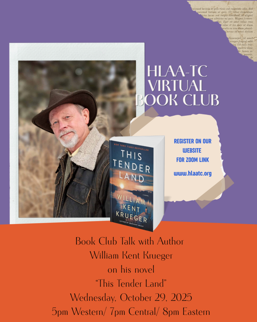 HLAA-TC Book Club is excited to be welcoming celebrated and New York Times Best Selling author William Kent Krueger to our October book club on Zoom. Krueger is originally from Oregon but has called our home state of Minnesota home for many years and sets his novels in Minnesota, including This Tender Land.